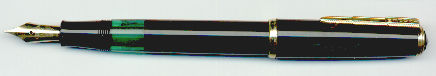 Cap inscription: Tropen Gold. At page 234 Lambrou it is shown as No. 300 Tropen-"de Luxe". Has been inked, but looks like unused. With additional tail end of the Tropen 500 it is useable as a desk pen. |