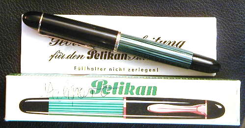 | Besonderheiten - Particularities | Box bekritzelt. Anleitung, Füller und Kappe in hervorragendem Zustand, lediglich Kappenband mit einigem Abrieb, sonst fast neuwertig. Schreibbereit! | Box scrawled. Instructions, pen and cap in beautiful condition, only capband with signs of use. Otherwise near mint. Ready to write! |