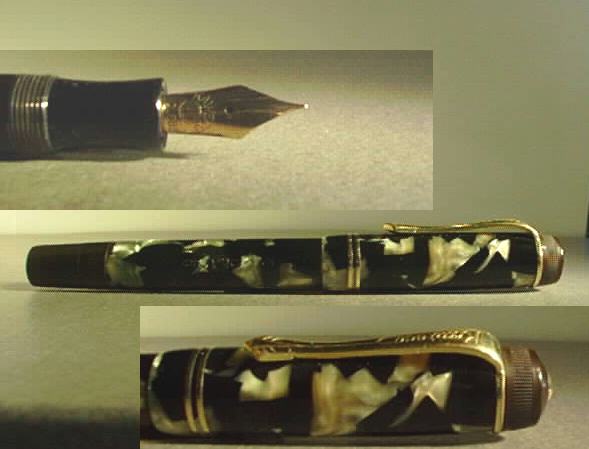 & pearl celluloid, 1936 ca. Kaweco Dia no. 85 EF, Kolbenfüller, black & pearl celluloid, 1936 ca. |