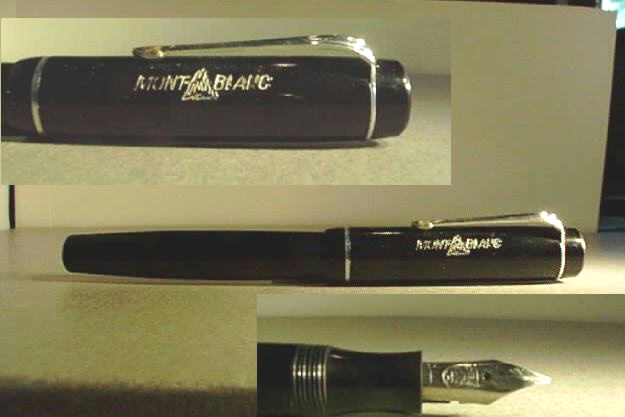 A more or less tragic pen, obviously made after the destruction of the factory in 1944, made from "Ersatz", Bakelite, Aluminium, steelnib. Some pens of this model do have a star and the engraving "44" on the blindcap, this one does not have both. Because of tis irritating qualities not much apreciated and sometimes not trusted as a true pen, but definitely a real Mont Blanc pen. |