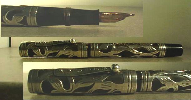The Filigree of this pen is the old version, made from 1908 to 1920. Clip, barrel and cap are properly hallmarked Sterling |