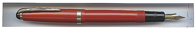 | # A003DK MontBlanc 212, Druckknopffüller, rot - Push-knob Filler, Denmark, red, 1955-1964 |
