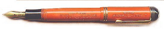 | # A005B Montblanc 30 Masterpiece 4810 korallrot, Stossfüller, Dänemark, ca. 1935 - Pushknob filler, Denmark, coral red, ca. 1935 |