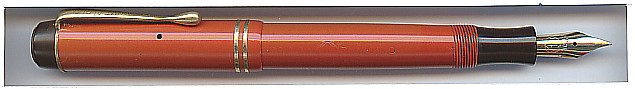 | # A008DK MontBlanc 4, Druckknopffüller, rot - Push-knob Filler, Denmark, red, 1937-1946 |