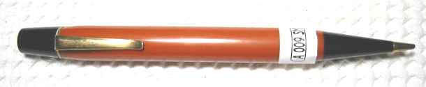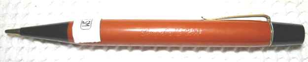 Beautiful large turning pencil, red hard rubber. Barrel engraved: Ready to write! Made by the Danish Olsen Pen Co., Copenhagen, who also made Parker and for a short time Esterbrook under license. The company is also well-known for producing the coral red Monblancs of the 40s and 50s; |