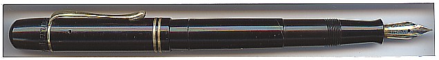 Pelikan 100 piston filler in black. Was made 1931-1944. In black harder to find as in green. Overall beautiful condition. The barrel has one visible scratch, but no cracks. Almost highgloss surface. Plating of the trims is very good. The piston works and hold the ink correctly. The nib writes good, but is not original. It is a GEHA nib. Due to the wrong nib lowered to 4 stars overall. |