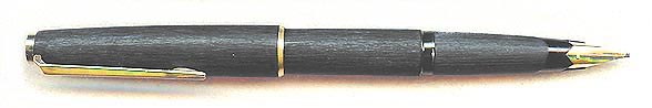 Montblanc black matte finished Piston Filler in near mint condition. No flaw and almost no signs of use or age to see. No cracks, scratches or other surface flaws. Imprint: Montblanc 220 at the cap band. Inlaid MB star in barrel and cap end. With a super flexible OB nib. A real pleasure to write with. |