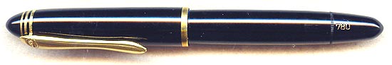 geht, wird ein Knopf unterhalb der Feder betätigt und es kann ohne nachfüllen weiter geschrieben werden. Praktisch ohne Gebrauchsspuren, fast neuwertig. Glänzende Oberfläche ohne Kratzer oder Risse, Vergoldung an Clip und Kappenband sehr gut erhalten. Reservetank und Kolben funktionieren einwandfrei. Kommt in der Original-Schachtel mit Gebrauchsanweisung. Voll funktionsfähig und schreibbereit siehe Lambrou, Fountain Pens o.t. World, S. 215 |