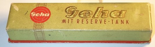 | Besonderheiten - Particularities | Geha Kolbenfüller mit der bekannten Tinten-Reserve. Wenn der Tintenvorrat zu Ende