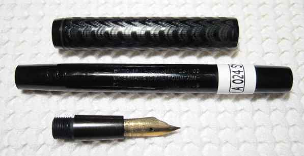 Risse. Tiefe und klare Gravuren: Im Halter-Ende: Im Schaft: Länge geschlossen: 13,4 cm Möglicherweise hat der Halter noch nie einen Tropfen Tinte gesehen, in jedem Fall aber in absolut neuwertiger Erhaltung. Der Beste, den ich je gesehen habe. Die original flexible Herzloch-Feder ist in gleich gutem