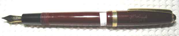 Grosser Knopffüller aus dunkelrotem Zelluloid. Länge geschlossen 13.3 cm; Skribent