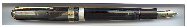 | # A031PA MONTBLANC 25, 12-kant, silber-schwarz, Stossfüller, DK - Montblanc 25, 12-sided, Push filler, platin black, Denmark, 1944-1949 |