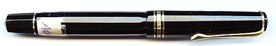 12-sided black celluloid Piston filler. Piston sucks round about 50% ink. Surface with little signs of use. Clip and cap bands beautiful. Repairs, replatings and adjustments can be done on request for additional costs. Please contact Werner |