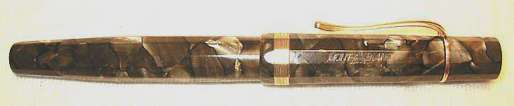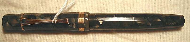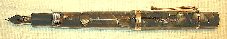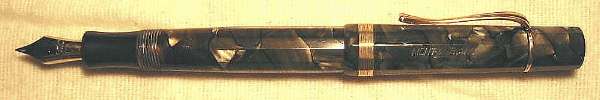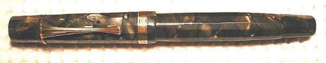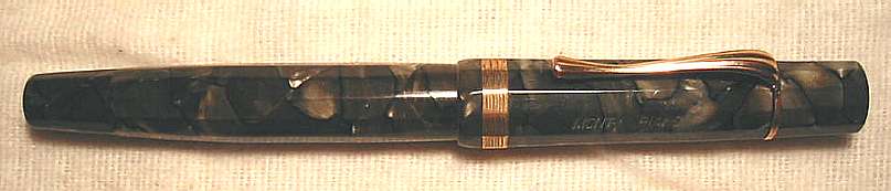 | # A069SM MONTBLANC 25, 12-kant, langer Kappenkopf, Stossfüller, grün marmor., DK - Push filler, 12-sided, long captop, green marbled, Denmark, 1939-1943 |