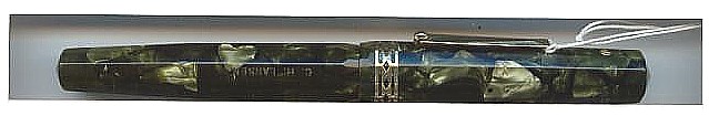 | Besonderheiten - Particularities | DER KLASSIKER UNTER DEN ART-DECO-FÜLLERN: 12-seitig facettierter Hebelfüller in Übergröße. Frühe Ausführung mit Roller-Clip. Oberfläche glänzend und ohne tiefe Kratzer, keine Risse oder Brüche.Sehr schöne Farbe. Vergoldungen an Clip, Kappenband und Hebel sehr gut erhalten. Hat im Schaft einen Namen in kleinen Buchstaben graviert. Kann auf Nachfrage entfernt werden. Sehr flexible Feder! Länge geschlossen: 13,9 cm mit aufgesetzter Kappe: 16,4 cm Ø am Kappenband 15 mm Benötigt einen neuen Schlauch zum Schreiben. (siehe Lambrou, Fountain Pens o.t. World, S. 139) SELTEN! |
