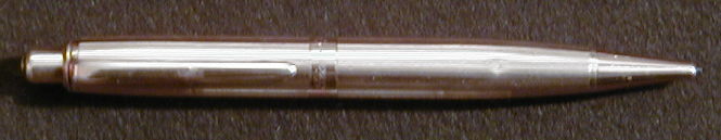 damals bereits 51 DM. Länge ca.12 cm. Durchmesser 1,1 cm. Inschrift: Montblanc Pix. Am Unterteil 2 grössere (eine auf dem Bild erkennbar) und 2 kleine Dellen, kleine Kratzer am Clip und eine deutliche Namensgravur "Dr. J.M.Casal". Minendurchmesser 1,2 mm. Technisch einwandfrei und schreibbereit. Walzgold-Pix sind selten zu finden. |
