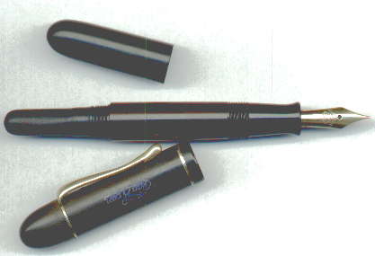 | Besonderheiten - Particularities | Rappen mit Pumpmechanik (Gummischlauch) wurde bis 1936 hergestellt und danach durch den Ibis mit Kolbenmechanik ersetzt. Gute Farbe, nur geringe Verfärbung des Hartgummis. Vergoldung etwas abgegriffen. Inschrift Kappe: "Rappen" mit dem springenden Pferd. Die schöne Original-Goldfeder "Garantiert 14 Karat". wurde von 1932-1933 hergestellt. Gehört in jede Pelikan-Sammlung, aber auch zum Schreiben gut geeignet. | Rappen with pump mechanism (rubber tubing) has been produced until 1936 and was the predecessor of the Ibis with piston mechanism. Good color, only little discoloration. Plating a bit worn. Inscription cap: "Rappen" and the jumping horse. The nice Original gold nib "Garantiert 14 Karat" was produced 1932 - 1933. A must for any Pelikan collection, but also a good writer. |