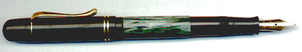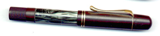 | Besonderheiten - Particularities | Schöner Pelikan 100, Kappenausführung mit je 1 Luftloch, ab1933 (siehe Dittmer/Lehmann). Hervorragende Erhaltung mit fast fehlerloser Oberfläche. Kappe gleichmäßig etwas verfärbt (siehe Bild), aber besser als üblich. Abnutzung der Vergoldung an 2 Stellen des Clips (kann auf Wunsch renoviert werden). Der Kolben arbeitet, zieht aber nur noch etwa 3/4 des Volumens. Schreibbereit. In diesem Zustand eine Bereicherung jeder Sammlung. | Beautiful Pelikan 100, model with 1 airhole on each capside, from 1933 (see Dittmer/Lehmann). Extraordinary condition, nearly flawless surface. Cap a bit discolored, but better than usual. Clip plating partially gone (can be replated on request). Piston is working, pulling 3/4 of volume. Ready to write. A nice pen for any Pelikan collection. |