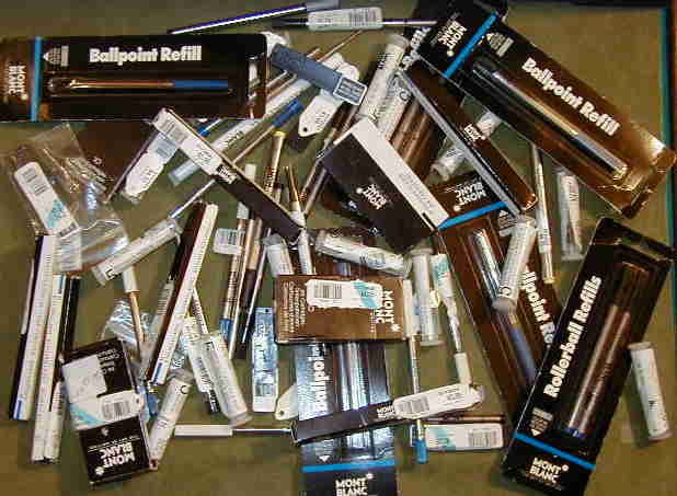 | # A122 Über 50 Verkaufseinheiten MontBlanc KS- und Rollerball-Minen, Radiergummis, Bleistift-Minen und Tinten-Patronen - Over 50 Units MontBlanc Ball Pen and Rollerball Refills, Erasers, Leads and Ink Cartridges |