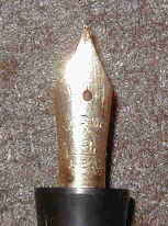 in einem Dreieck, die korrekte Feder für einen Füller der 3er Baureihe - F-Nib with "Warranted 14 carat" inscription, and the letter "a" in the middle of a triangle. The correct nib for a pen of the 3xx series of Mont Blanc |