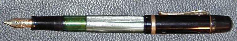 | # A137 Pelikan 100N grau oder grün, mit geriffeltem breitem Band und Clip - Pelikan 100N grey or green, with broad fluted band and clip. |