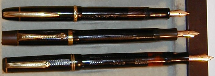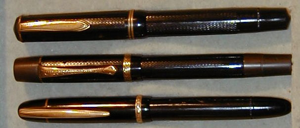 -3- BBC ? 103, probably Germany 30s or 40s, 14K 585 Goldfeder. Wave pattern, barrel inscription "BBC". Clip plating partially worn, 1 cap ring slack. |