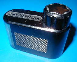 Extremely rare Montblanc Travelers Ink Bottle with ink window. All MB traveling ink bottles are rare, but this is problably rarest of all. Usual you can find no. 1000/1001 in black hard rubber for Safety Pens. This is for use for Selffilling Pens.The price-list from 1936 shows it as no. 1008, the only one with ink window for visible ink level. Useable at home as well as outdoor. Not made from black hard rubber as usual, but made of black Bakelite. Contains 45 grams ink, more than double of no. 1000. For the price of 3.75 RM it was very expensive. Due to the cracks in screw cap for a very low starting price. EXTREMELY RARE!!! |