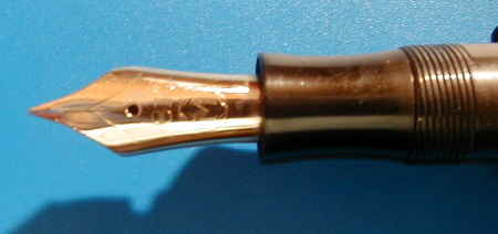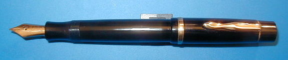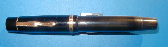 one has been sold as a parts pen in London a few years ago. It is in overall exellent condition, no cracks, chips or even scratches. Highglossy surface, almost no discoloration. Pictures telling more as 1000 words. So i made a lot of pictures at different illuminations, some with flash, some without. More pictures to find on page 2. So you can find you own opinion. The large 4810 Masterpiece nib was 2-colored, but is only golden now. The pen is workable condition, but need a new sac for writing. I am unable to open it, so this should be done by a repair expert. I did not, because it will not be used for writing, due to its enormous rareness and value. The clip got a new gilding and also free of scratches. Engraved a filling button "L 129" and "EF". A dip test lays a M line, under pressure of the semiflexible nib a B line. The nib tips showing a difference of a few millimeters, but the nib writes smooth and easy. The cap is very interesting, Not as shown in a drawing in the attachment of Roeslers MB book with 3 cap rings like the later L 139, instead with 1 broad capband without inscription. Rösler dates this pen to 1937 -1938, but has been already described in MB price list from 1936. Some collectors means, that it could have a cap from a MB 128. I don´t know. Fact is, that there is no image of a L 129 anywhere in fountain pen books. Some other MB models have had different cap types, so it is also possible here. At page 265 in Lambrous book are shown the models 128 PL, 138 and L 139 for comparison. Only the later L 139 from 1939 has three cap rings there. The inheritor told me, that this was the pen of a physician and remembered, that it did not leave for repair. Since the sac has gone, it slept in a drawer until the owner died. If this were correct, it would be the original cap. But nobody knows. However, one of the most interesting vintage fountain pens of the world. Probably you won´t get a second chance to be the proud owner of this outstanding MontBlanc. For more informations about the topic have a look at: A summary of the MONTBLANC push button Masterpieces No. 122 - L 129 EXTREMELY RARE! |