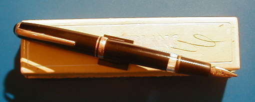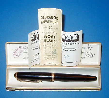 trim. Smooth gliding OBB wingnib Comes in original box with german manual and a repair receipt by Fa. Stöffhaas from 1958. The box is scrawled upon and shows a stamp: Kapitän (Captain) Wilhelm Steffgen - Lotse (Pilot) ... beneath. Ready to write and full working. |