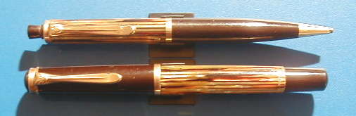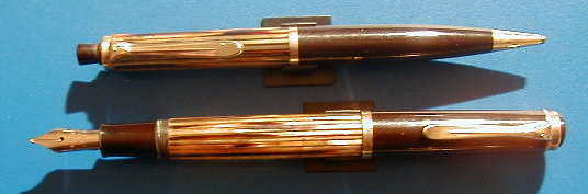 | # A201 Pelikan 400/450-Set Füller und Druckbleistift, braun gestreift Deutschland - FP 400 and Pencil 450 Set, tortoise, Germany 1950 |