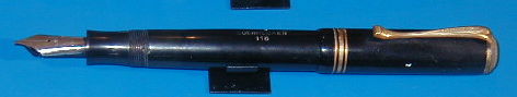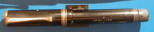 should be watched. Some ink came out from the fillink knob, when tested. On page 219, number 9 in Lambrous book is shown a Soennecken 120, matching almost this pen (except color). He wrote, that this pen was produced in sizes 110, 112, 116 and 120. Nothing to find about Nr. 118. An interesting pen for the Soennecken collector, not very good for use. |