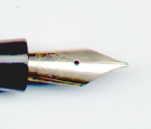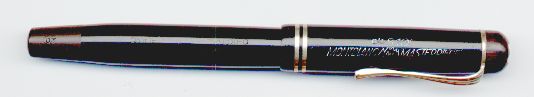 to find in those exellent condition. It is from Danish production, recognizable by inscription "Masterpiece" and clip. The cap and barrel are not discolored and without scratches or cracks or other suface flaws, glossy surface. Imprints at the cap very good, at the barrel faint, but almost still readable. Both hard rubber ends a little bit brownish. The large MB star has been restored and is like new again, white and highgloss. Condition of clip and capbands is exellent. * The only reason, that this pen did not get the title "Top Pen" is, that the pen is fitted with a Penol -Ambassador gold nib of same size. For this reason lowered to only 4 stars, though it is a beautiful pen. Has gotten a new ink sac. Full working and ready to write. * A good opportunity, because of the Penol nib. See also Lambrou, page 262 and Rösler, page 103. |