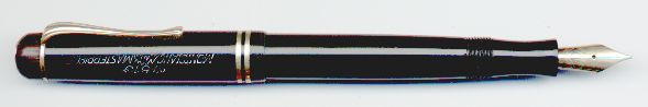 aus dieser Zeit sind nur noch selten in sehr guter Qualität zu finden. Dieser stammt aus Dänischer Produktion, erkennbar an der Aufschrift Masterpiece und dem Clip. Schaft und Kappe ohne Verfärbung und ohne Kratzer oder Risse. Glänzende Oberfläche, Inschrift der Kappe sehr gut erhalten, am Schaft dünn, aber überwiegend noch lesbar. Die Hartgummi-Enden leicht bräunlich verfärbt. Der grosse MB-Stern wurde restauriert und ist wieder wie neu, weiss und hochglänzend. Hervorragende Erhaltung von Clip und Ringen. * Der einzige Grund, warum dieser schöne Füller das Prädikat "Top Pen" verpasst hat ist, daß er nicht die Original-Feder besitzt, sondern mit einer gleichgrossen Penol-Ambassador Goldfeder ausgestattet ist. Daher in der Gesamt-Wertung auf 4 Sterne herabgestuft. Hat einen neuen Schlauch bekommen. Voll funktionstüchtig und schreibbereit. * Wegen der Penol-Feder eine günstige Gelegenheit. Siehe auch Lambrou Seite 262 und Rösler Seite 103 |