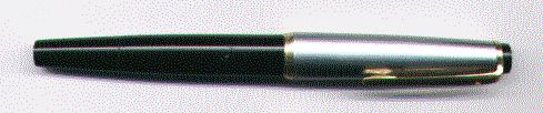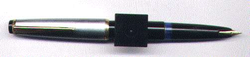 MB piston filling fountain pen with inlaid goldnib. Black barrel, lustreless