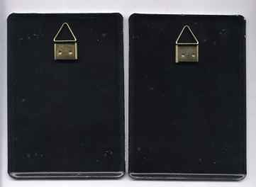 black enamel with later added hanging. This is the upper right shown sign, the other one is also in auction. Mint condition. Measures: 14 x 10 cm. The motif was already used in the 20s. The sign is showing a little imprint "L-ZABEL 1921". I estimate, that it is a reprint from the 50s- Addition! An auctions member has let me know, that this signs were presented as a gift from Pelikan for retailers at a show. Thanks Gerhard! Reason enough to lower the starting price! |