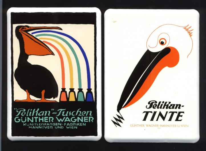 Rückseite schwarzes Emaille mit später zugefügtem Aufhängehaken. Es handelt sich hierbei um das oben rechts abgebildete Schild, das andere ist ebenfalls in der Auktion. Absolut perfekter, fehlerfreier Zustand. Die Abmessungen sind: 14 x 10 cm. Das Motiv wurde schon in den 20er Jahren verwendet. Das Schild trägt oben klein den Aufdruck "L-ZABEL 1921". Ich vermute, dass es sich um eine Reproduktion aus den 50er Jahren handelt. Zusatz! Ein Auktions-Mitglied hat mir mitgeteilt, dass diese Schilder ca. 1970 als Messegeschenk von Pelikan an Fachbesucher abgegeben wurden. Danke Gerhard! Anlass genug, den Ausrufpreis zu senken! |