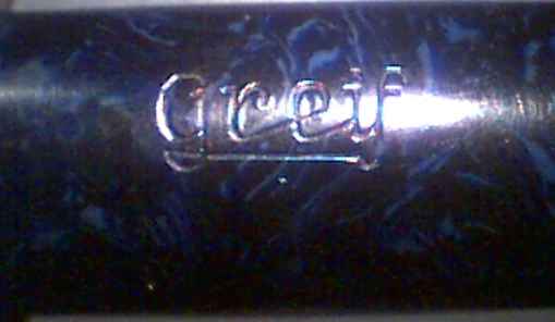 of clip and capring flawless. Length open with cap on: 14.0 cm, closed: 11.4 cm, diameter at capband: 1,15 cm. Though there are known several beautiful GREIF pens, I don´t know much about history or models. But it is known, that GREIF was bought by PELIKAN in the 50s or 60s. The pen suggests to streamlined Parker Duofolds from the early 30s. So I estimate it is manufactured ca. mid 30s. Pen is in very collectable condition and fully working, with a fresh inksac. Very beautiful and very rare! Have also a look at two other GREIF pens to come next days in auction! |