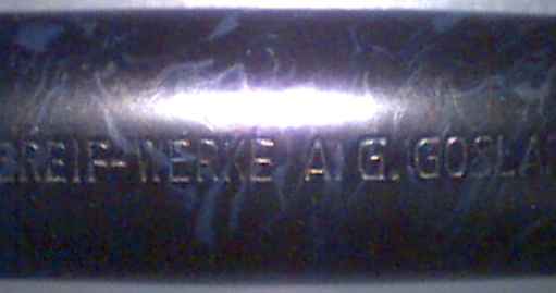 Oberfläche, klare Inschriften, wie auf den Mikroskop Ausschnitten (oben Kappe, unten Schaft) zu erkennen ist.