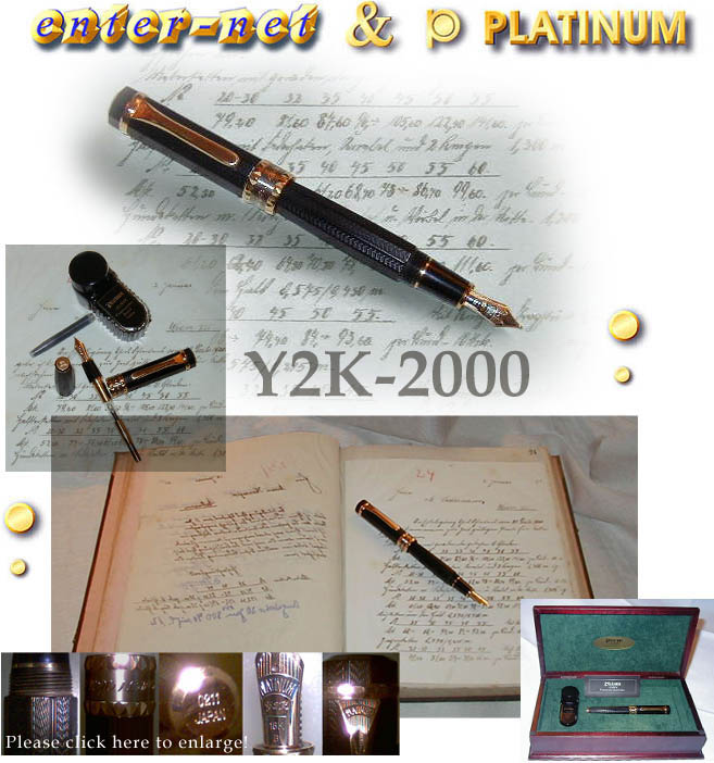 PLATINUM Y2K-2000" in gold-plated high relief in remembrance of the Millennium. A two-color nib made of 18K
