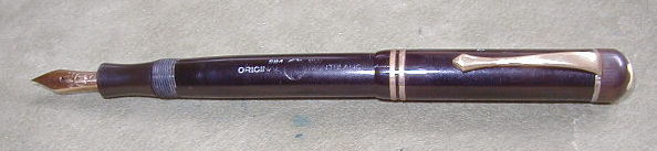 Unusual black MB 20 of danish production. MB 20 are usually masterpiecies, recognizable by the filling mechanism, the "4810" masterpiece nib, the large star and the engraving "Meisterstück 4810" on the cap. But on the cap of this pen is nothing engraved. Barrel inscription: "Simplo - Original Montblanc" a bit faint and name engraved "Carlo Jensen". Surface of cap and barrel very clean and without scratches. But as almost usual with a little hairline at the caplip. The hardrubber captop and the filling knob with inscription "20" and "EF" little brownish discolored. Very good trim with some sign of use. The 4810 Masterpiece nib has a little scratch in the "M circle". The large MB star is beautiful and 95% white and glossy. Has gotten a new ink sack and is ready to write! Rare! |