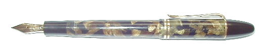 Very rare Meisterstück (Masterpiece) pushknob filler L25 green mottled, captop and pushknob black hard rubber. This colored streamline Masterpieces are usually not for public sale. In addition the green mottled are much rarer as the black and pearl colored. The pen is in extraordinay fine condition and was checked and resacced by Tom Westerich (Dr. Ink). Glossy surface. No cracks or hairlines. No important scratches. Fluted clip and trim very good. The beautiful 4810 Masterpiece nib (size EF) is semiflexible and free of scratches. The little Montblanc star in the high top has two tiny darker spots. The hard rubber ends are nearly perfect black. Only the barrel is uniform something darker as the cap, but not conclusive for a pen of his class. I have shot pics from all sides and different light status to make it visible as good as possible. Remarkable are the deep and clear imprints on cap and barrel. All parts original and full working. Only very little signs of use. Length closed: 13.5 cm Cap imprint: "4810 MONTBLANC MEISTERSTÜCK" Pen was checked and has got a new ink sack. Ready to write and full working! An outstanding pen for every advanced Montblanc collection and a rare chance. Don´t let this go. Very rare! |