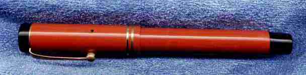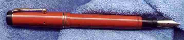 Beautiful and large Lucky Curve Duofold utton filler, red Permanite, 1928,