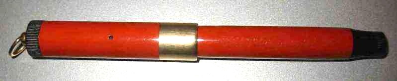 | Besonderheiten - Particularities | Knopffüller aus rotem Permanite (Parkers Zelluloid); Damengrösse