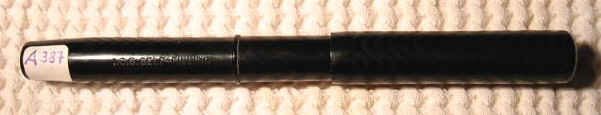 Another pen from a small collection of very old hard rubber pens! Early sac filler with unusual filling mechanism. Black chased hard rubber. In nearly perfect condition. For filling screw off the upper part of the barrel. Underneath is a hole with the sac and a pressure bar. Fill the ink into the sac by pressing the bar. It has a screw cap without clip. Though so very old, this pen is in near perfect condition. Deep black, without any discoloration. Highglossy surface. No cracks or scratches. Only the inner pressure bar shows signs of aging. Deep and crisp Imprints: barrel: I.C.S. SELF-FILLING