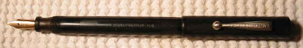 Another pen from a small collection of very old hard rubber pens! Early EAGLE hard rubber lever filler with nickle trims. Date of production unknow. Length closed: 12.5 cm Diameter cap: 12.5 mm Clip and lever engraved: EAGLE PENCIL CO., USA Barrel engraved: EAGLE PENCIL CO., NEW YORK, USA Pliers marks at the section. Little discolored at section and the lower part of the barrel. Little split above the clip, without consequence for function or writability. Beautiful gold nib. Ready to write. |