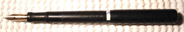 Another pen from a small collection of very old hard rubber pens! Very early little SWAN hard rubber eyedropper. Still produced in New Yor, not in London as the later Swans. Length closed: 10.7 cm Diameter cap: 12 mm It is an eyedropper, though the engraving says, that it is a safety. Probably real safety pens were not know, when this pen was produced. Cap engraved: SCREW CAP TIGHTLY <-----------------<< Barrel engraved: SWAN SAFETY PEN MABIE TODD & Co; NEW YORK PAT. JAN. 26/04 At barrel end: D 3 No important flaws visible. Beautiful gold nib. Ready to write. |