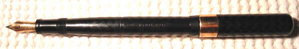Ein weiterer Füller aus einer kleinen Sammlung sehr alter Hartgummi- Früher Schlauchfüller aus schwarzem Hartgummi mit interessanter Mechanik.In wunderschöner Erhaltung. Hierbei handelt es sich um einen frühen Schlauchfüller. Zum Befüllen wird der hintere Teil des Schaftes einfach nach hinten geschoben. Darunter kommt dann eine Öffnung mit inliegendem Schlauch und einer Druckstange zum Vorschein. Durch drücken des Metalls wird die Luft aus dem Schlauch gedrückt und der Füllvorgang kann erfolgen. Dieser Füllmechanismus wird wohl auch "Sleeve-Filler" genannt. Die Kappe hat keinen Clip, wie damals üblich. Es handelt sich aber bereits um eine Schraubkappe. Darauf ein breites goldenes oder vergoldetes Kappenband mit einem kunstvoll geschwungenen F darin. Außerdem eine kleine Prüf-Feilspur vorhanden. Trotz des hohen Alters ist der Füllhalter in einem ganz hervorragenden Zustand. Hochglänzende Oberfläche, nur geringe gleichmäßige Verfärbung am Schaftoberteil und Kappe. Keine Kratzer, keine Risse. Deutliche und klare Schaft-Inschrift: RYRIE BROS. Länge geschlossen: 13,0 cm Über den Hersteller RYRIE BROS. und den Produktionszeitraum ist mir nichts weiter bekannt. Die schöne Goldfeder ist ebenfalls in sehr gutem Zustand und schreibt angenehm. |