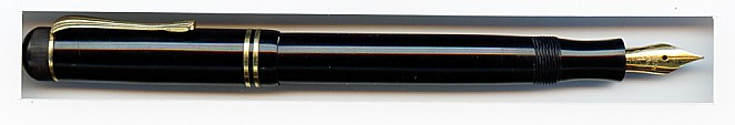 Sehr schöner schwarzer MB 25 Stossfüller exellenter bis nahezu neuwertiger Erhaltung. Meisterstücke aus dieser Zeit sind nur noch sehr selten in solcher Qualität zu finden. Inschrift Kappe: 4810 Inschrift Schaft: SIMPLO Inschrift Füllknopf: 25 und EF Stammt aus Dänischer Produktion, erkennbar am Riffel-Clip und der Inschrift "Masterpiece". Schaft und Kappe ohne jede Verfärbung und fast frei von Kratzern. Hochglänzende Oberfläche, Inschriften an Schaft und Kappe bestens erhalten. Der große MB Stern ist schneeweiß und hochglänzend. Vergoldung sehr gut, praktisch kein Abrieb am Clip und den Ringen. Alle Teile original. Die Feder muss einmal gewechselt worden sein, da es sich wohl um eine M-Feder handelt, am Füllknopf aber EF graviert ist. Feder trägt keine Inschrift 4810. Hat einen neuen Schlauch erhalten. Voll funktionstüchtig und schreibbereit. |