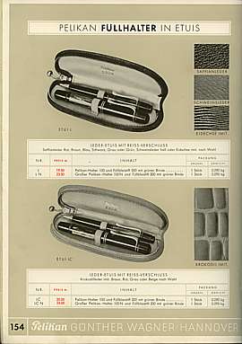Seltene Pelikan Hauptliste von 1938. 268 Seiten, Format 29,7 x 21 cm. Brauner Leinen-Einband, zweifarbiger Druck mit hunderten Bildern, praktisch wird jeder Artikel im Bild dargestellt. Auf 268 Seiten eine Fülle von Informationen zu Tausenden Artikeln wie Beschreibung, Eigenschaften, Maße, Gebinde, Gewicht usw. Außerdem sind in dieser Liste die Einkaufs-Preise angegeben. Jede Menge Abbildungen, ich habe nicht nachgezählt, aber es sind gewiss viele Hundert Zeichnungen. Fast jedes damals produzierte Teil wird im Bild dargestellt. Darüberhinaus interessante Informationen zur Firmengeschichte, Niederlassungen und Adressen. Im Gegensatz zu den anderen, in der Auktion befindlichen, Listen sind hier auf 11 Seiten viele Informationen und Bilder zu Füllhaltern und Federn, Geschenk- Etuis und dazugehörigen Bleistiften aufgeführt. Der Leinen-Einband zeigt Wasserflecken und Gebrauchsspuren. Auf etwa