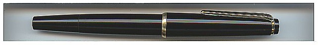Montblanc black Piston Filler in excellent condition. No flaw and almost no signs of use or age to see. No cracks or deep scratches, glossy surface. Imprint: "Montblanc 32" at the cap band. Inlaid MB star in cap end and in barrel end. In contrast to the other pens of this model line this is the only pen with not inlaid nib. This small gold nib is extra stiff for making carbon copies. This model is hard to find. Full working and ready to write. |
